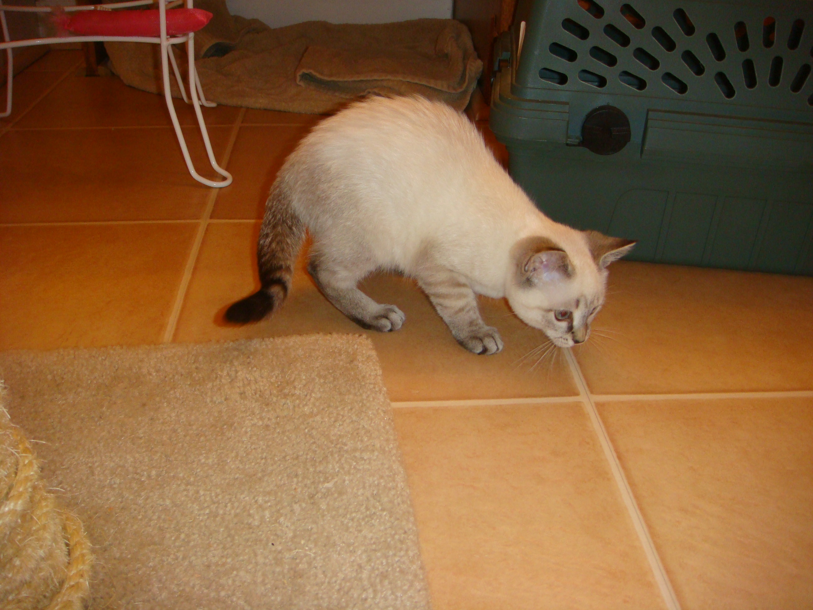 Oh dear. You are absolutely right – that’s NOT an 8 week old kitten. For comparison, here’s my little girl at about 7 weeks: https://www.facebook.com/photo.php?fbid=1381373887529&l=4a344f9c3d . And here she is at about 3 months: https://www.facebook.com/photo.php?fbid=1381373847528&l=f7fb039590 . Meimei looks a lot more like the 3-month-old in the above picture.