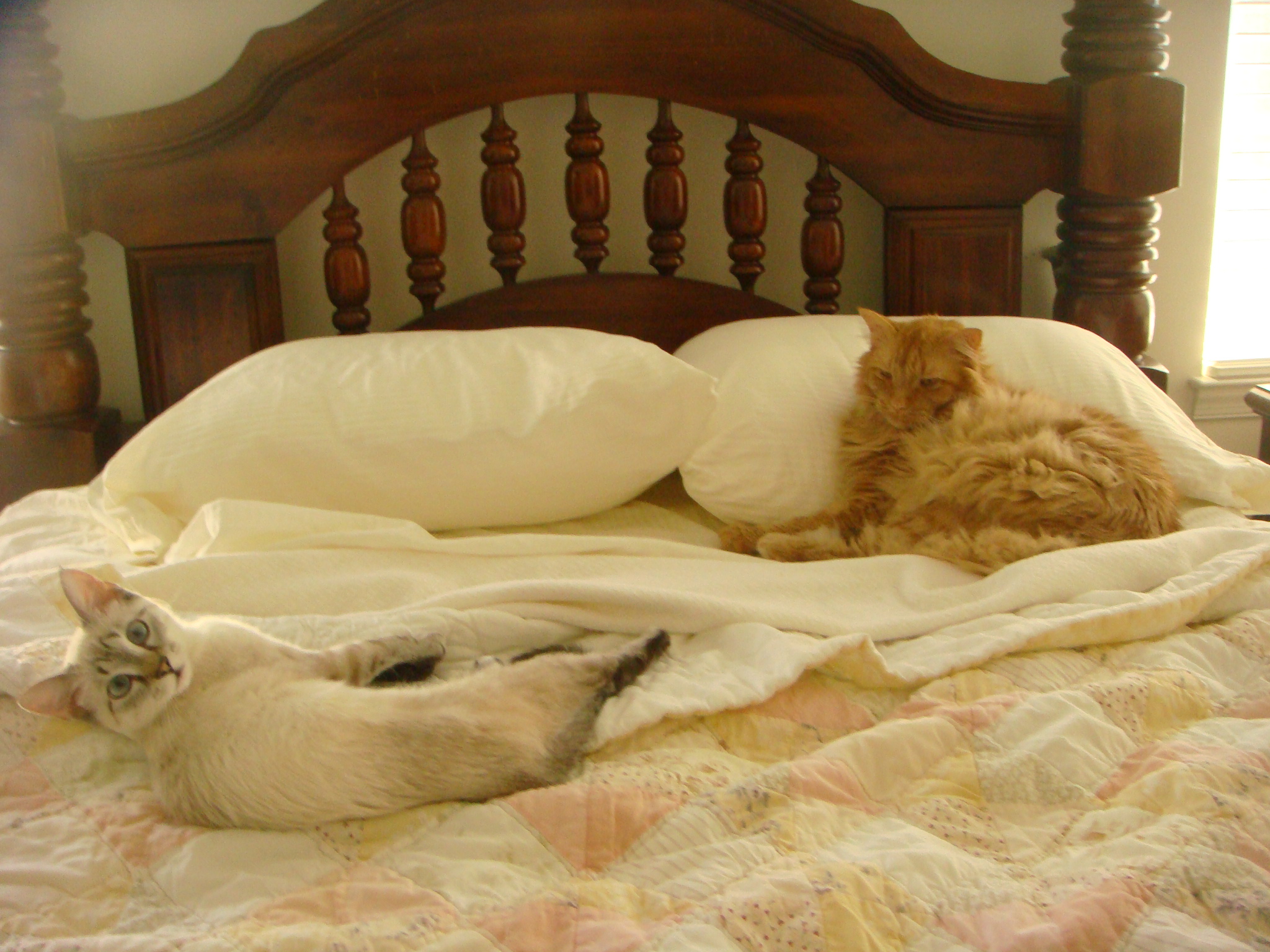 At least they are on the same bed, they look very healthy and happy!